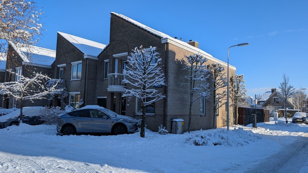 De winter is in alle hevigheid los gebarsten in Nederland deze week. Op dit moment ligt er ca. 20cm sneeuw in Gouda. Gelukkig kan ik deze week thuis werken want met de auto op pad is niet echt een leuke uitdaging op dit moment. De zonnepanellen zijn ook helemaal verstopt onder de sneeuw, dus even geen eigen stroom ook al schijnt de zon regelmatig uitbundig.