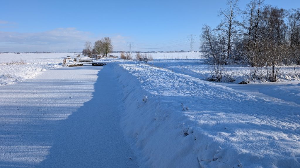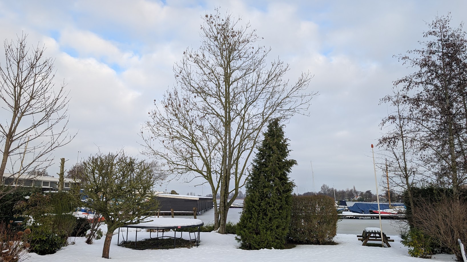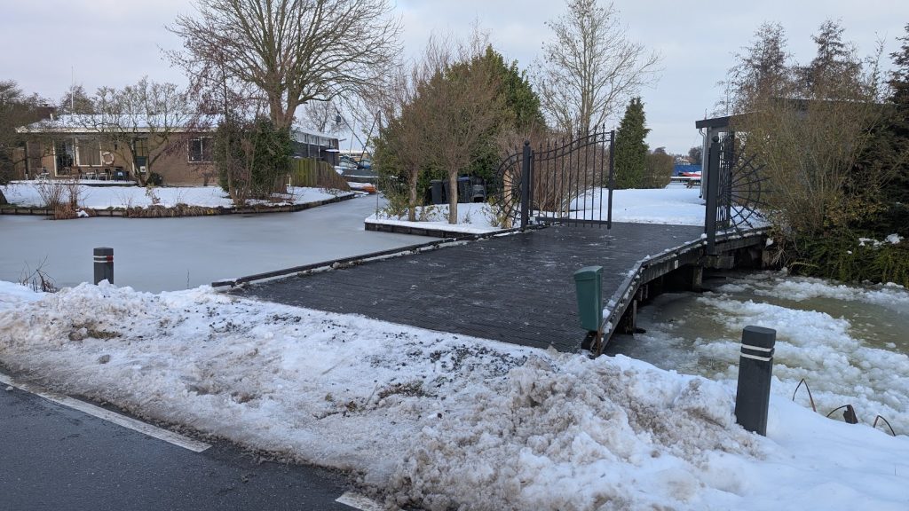 Tijdens de lunch langs Reeuwijk gefietst. Ook hier is alles wit. Kon het niet laten dus heb de oprit + brug even sneeuw vrij gemaakt. Denk dat ik ca. 500kg sneeuw heb verwijderd. Sneeuw weegt toch best wel zwaar als er een laag van ca 25cm ligt.