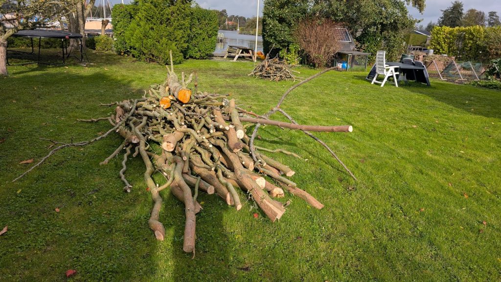 Update 24-10-2025 Vandaag de takken die in het gras lagen tot openhaard hout gezaagd en verder nog de haag tussen ons en de buren gesnoeid. Dan zijn alle grote tuin klussen voor dit jaar weer gebeurt.