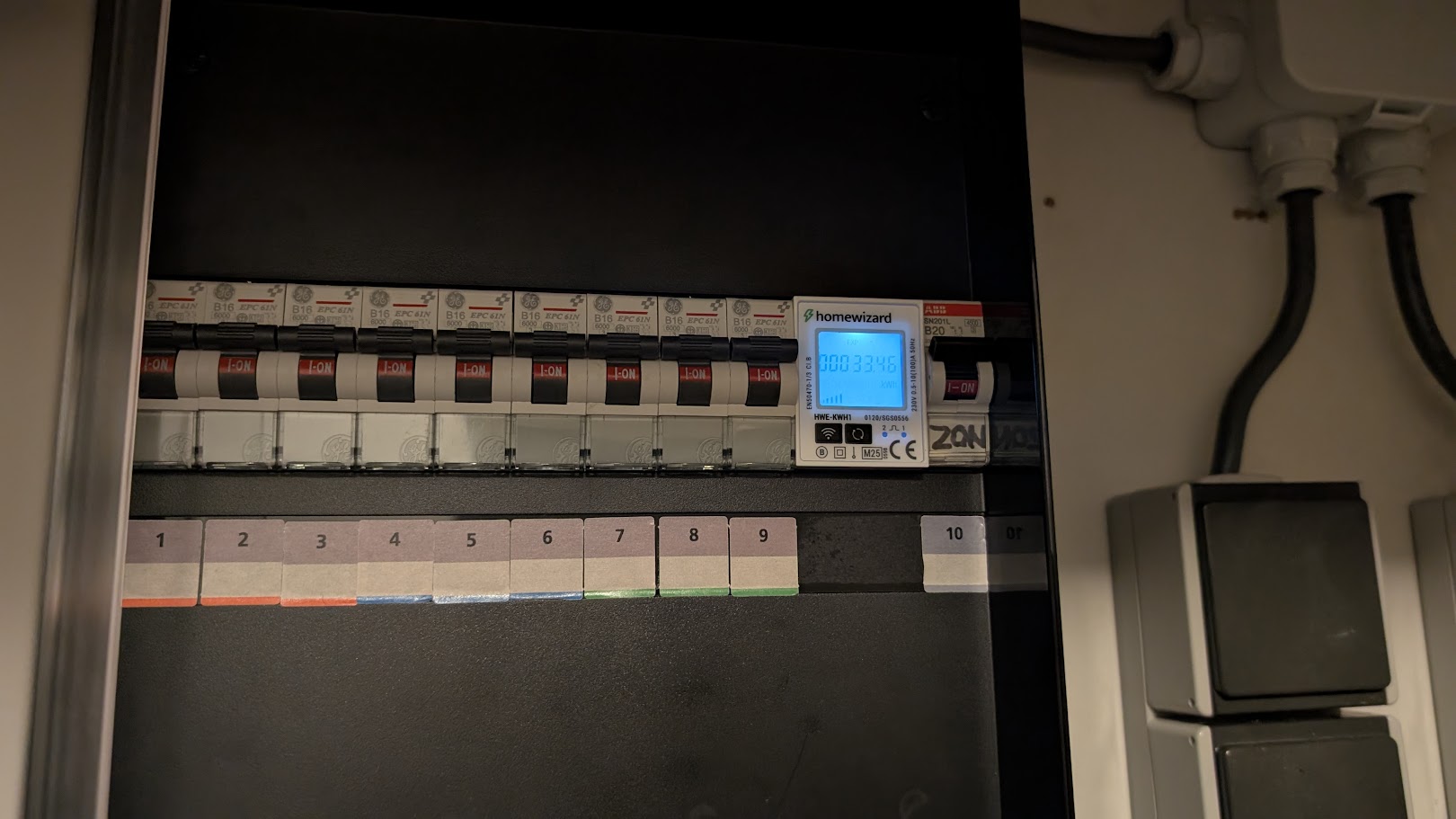 Vanavond is de HomeWizard (Nederlands bedrijf) home-automation spullen geleverd. Ik heb een P1 dongle, DIN-rail digitale kWh meter (voor de groepenkast) en energy-socket gekocht. Deze spullen zijn echt super gaaf! Na de installatie krijgt elk device zijn eigen IP adres op je wifi netwerk. Via dit IP adres kan je de REST API (JSON data) uitlezen en de energy socket aan/uit schakelen. Ik heb een klein python programma geschreven die op mijn Raspberry Pi (plus Sensehat) draait. Als mijn zonnepanellen stroom terug gaan leveren aan het net schakelt automatisch mijn elektrische kachel aan. In plaats dat ik maar 1 euro cent per kWh terug krijg verwarm ik nu “gratis” mijn kantoor 🙂